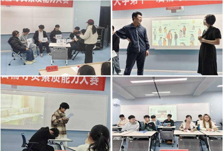 4月14日晚,bv伟德国际1946在三山楼704教室举办2026年“心沐暖阳 逐梦远航”心理情景剧比赛。学院关工委老教师王文初,辅导员武启慧、朱江涛、李健应邀担任评委。经过前期初赛筛选,共有六支队伍晋级决赛。伴随主持人开场致辞,比赛正式拉开帷幕。